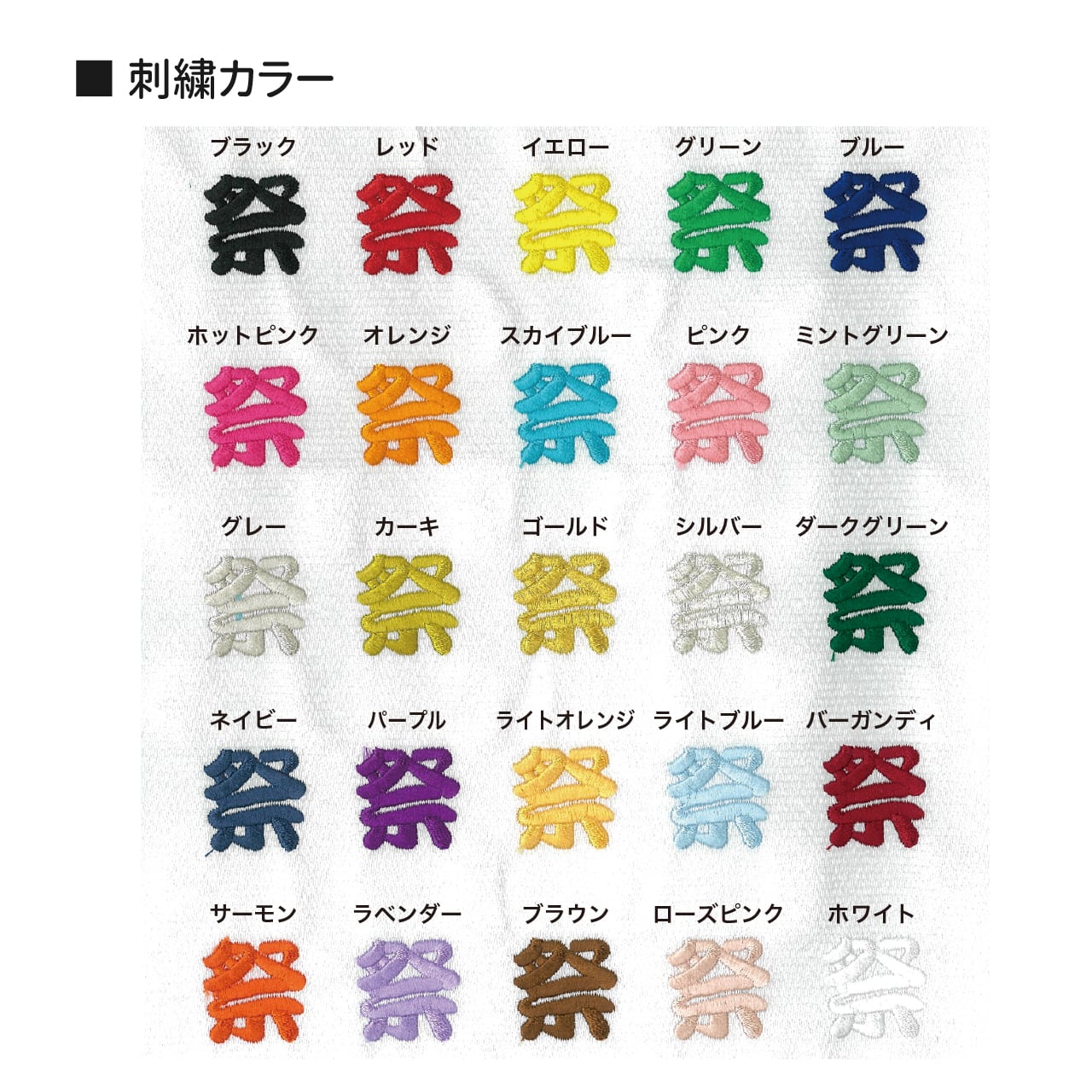 刺繍の色と書体をお選びいただけます。